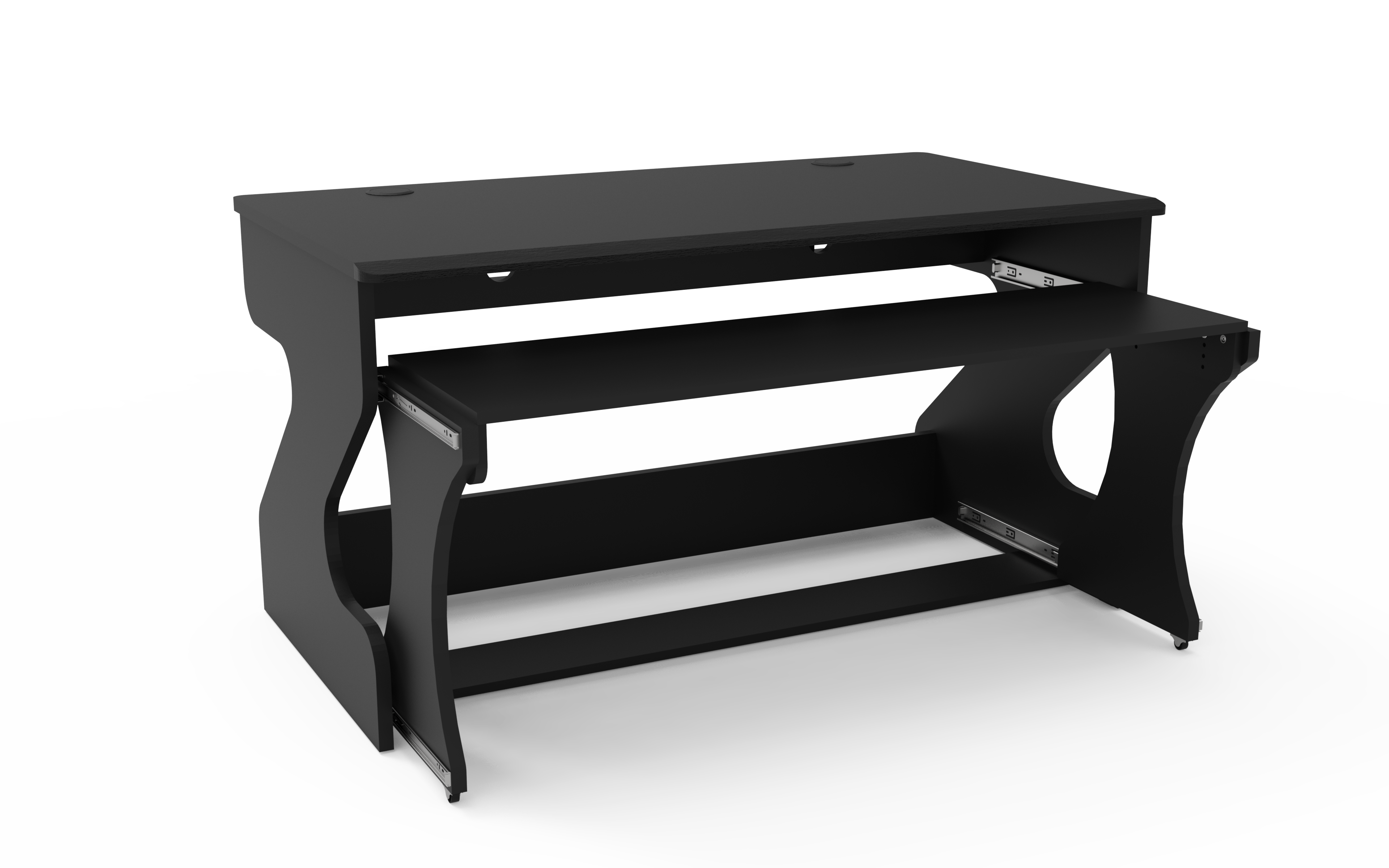 Wunderschön einfach, unendlich vielseitig: Das neue Miza M FLEX bietet eine große Oberfläche, ein robustes , höhenverstellbares Ausziehtablett mit Dual-Rail-System und ein neu gestaltetes Kabelmanagement, alles im beeindruckenden Miza- Design.